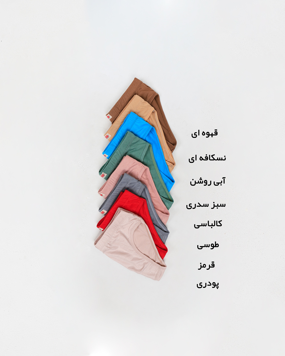 | رنگ | بادمجونی , پنکیکی , قرمز , سرمه ای , سبز صابونی , ذغالی , مشکی , سبز تیره , کالباسی , پودری , طوسی , سرمه ای سیر , نسکافه ای , سبز سدری , آبی روشن , قهوه ای |