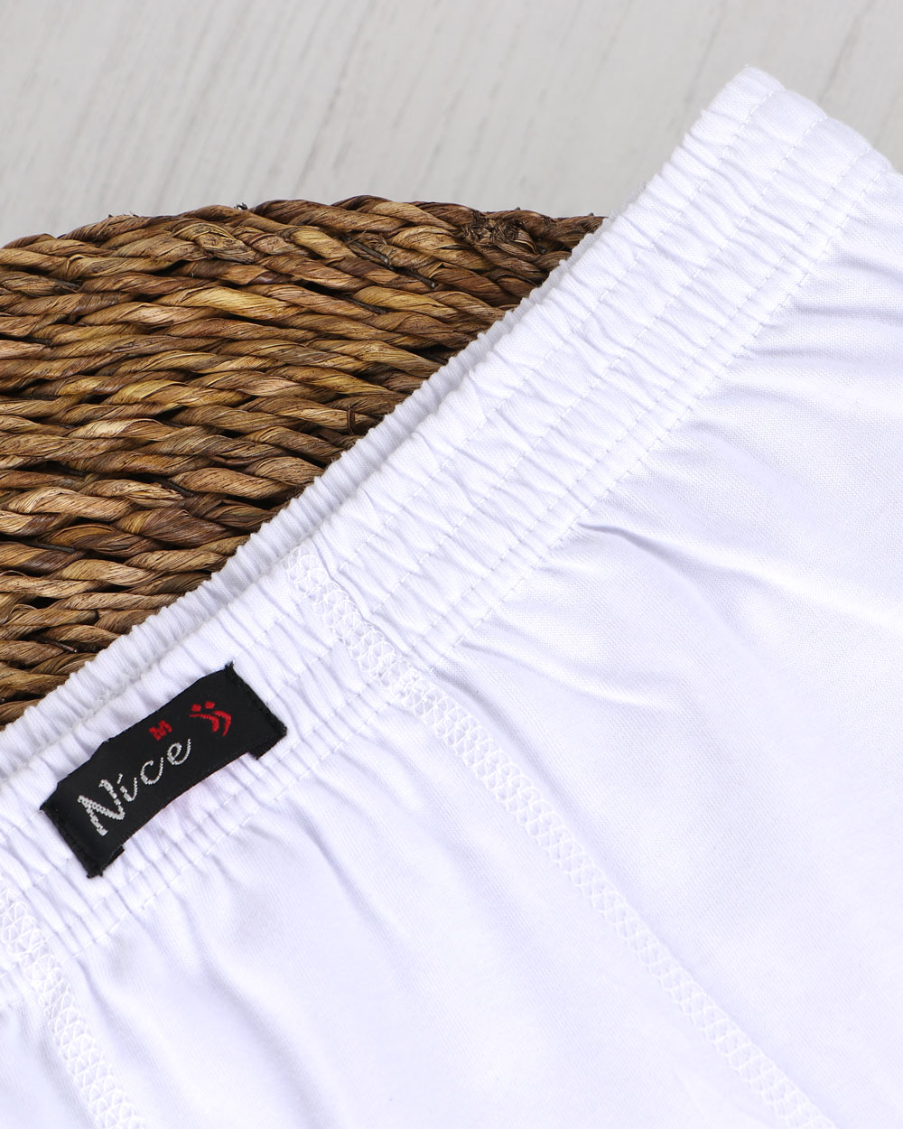 شورت مردانه رنگ سفید با جنس مخ پنبه بسیار باکیفیت و با کشسانی عالی مناسب استفاده روزانه آقایان میباشد.